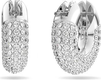 Light up after-dark looks in these rhodium-plated hoop earrings glittering with crystal pavé.