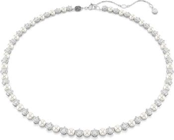Brilliant round Swarovski crystals and lustrous Swarovski pearls illuminate a timeless tennis necklace that brings elegant sparkle to any look."
