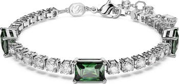 Rich green baguettes punctuate the silhouette of this timeless tennis bracelet strung with a shimmering array of Swarovski crystals.