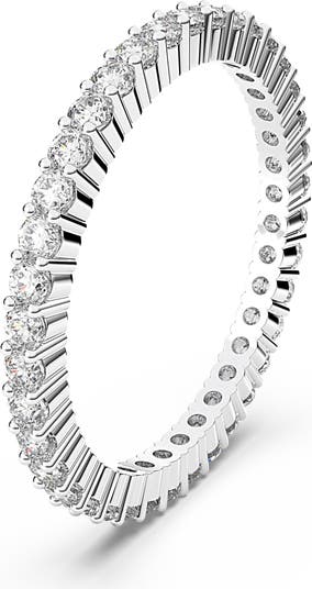 An eternity of shine defines a ring lined with Swarovski crystals.