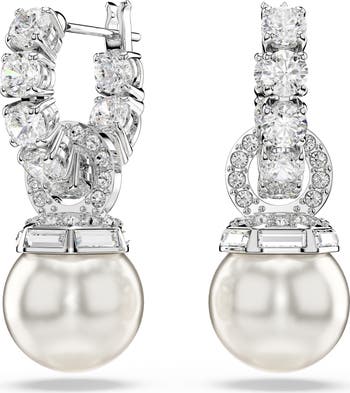Matrix Faux Pearl Drop Crystal Hoop Earrings