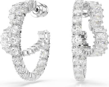 These double-hoop earrings include heart-shaped hoops with baguette-cut pavé crystals that bring a romantic glow to any look, day or night.