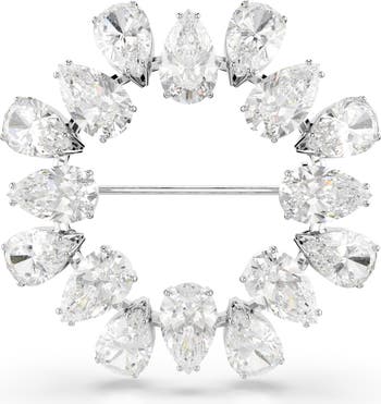 This rhodium-plated brooch features a circle of pear-cut Swarovski Zirconia in alternating directions to create an endless light-catching effect.
