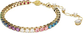 Add vibrant sparkle to your wrist with this elegant bracelet set with multicolor Swarovski crystals and plated in polished goldtone.