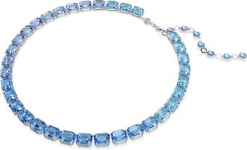 Blue octagon-cut crystals intensify the impact of this collar necklace for glamorous day-to-night style.
