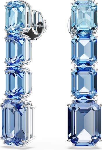 Octagon-cut blue crystals cascade down your lobes in these captivating drop earrings emboldening your look with signature Swarovski sparkle.