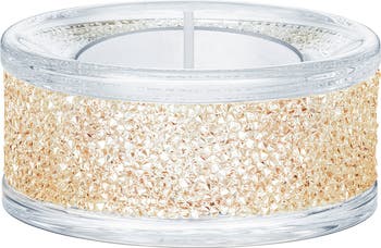 This round tealight holder made in crystal-clear glass is encrusted with 1,500 Swarovski stones for opulent shine and dreamy color.