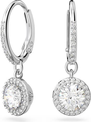Pavé crystals halo the round-cut crystal drops dangling from these dazzling earrings directly inspired by the constellations.