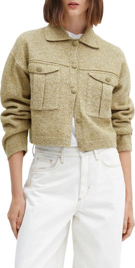 Marled yarns lend soft texture and a dimensional look to this slightly cropped, workwear-influenced sweater-jacket.
