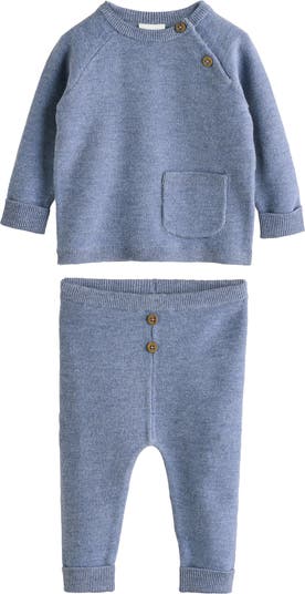 Cozy and polished, this sweet set is knit from soft yarn and detailed with embossed buttons. The sweater features a patch pocket and raglan shoulders, while the leggings are finished with ribbed cuffs.
