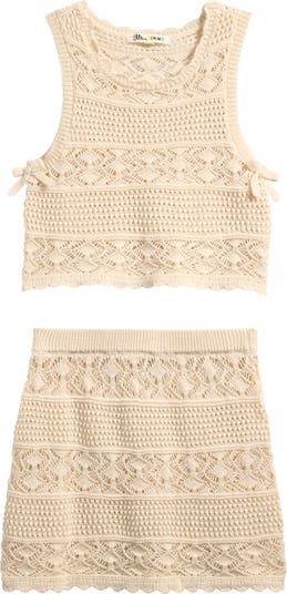 This little kids’ open‑knit tank and skirt set features a lightweight, textured design that’s perfect for warm‑weather play and special outings.