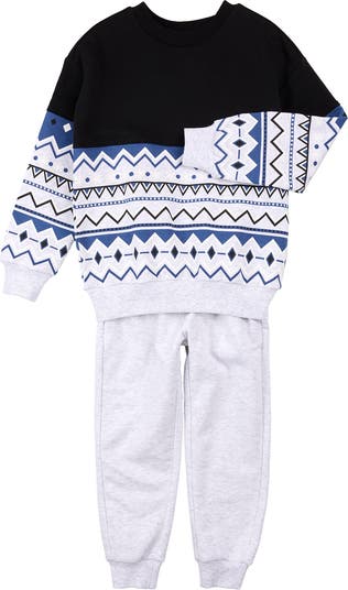 A fairisle print adds to the wintry charm of this cozy set featuring a comfy crewneck sweatshirt paired with coordinating sweatpants.