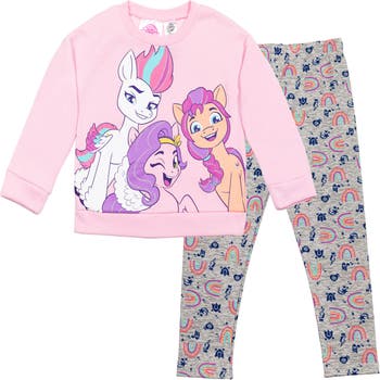Your little girl is ready for fun and play in this My Little Pony Sweatshirt & Leggings. Journey to the magical land of Equestria and join the Ponies, Pegasus ponies, Unicorns, and Alicorns on all their latest adventures. Your little girl will love wearing this cute and stylish long sleeve graphic sweatshirt and matching leggings featuring her favorite My Little Pony characters.