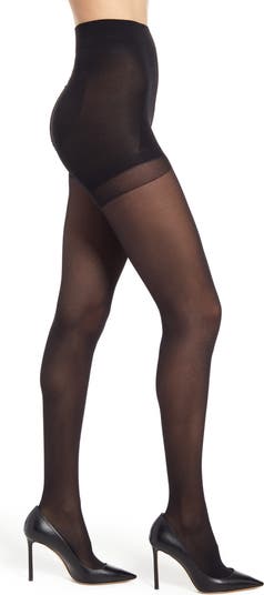 Strike a powerful pose in these semi-sheer Italian tights made out of a blend of recycled fibers with a smooth, sculpting control top.