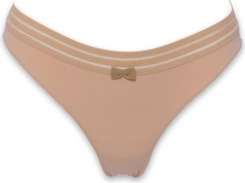 Comfort, softness and simplicity combine on this ladder lace-trim thong made of a stretchy cotton blend.