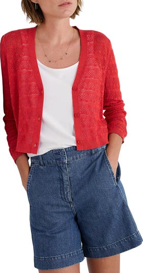 Pointelle stitching in an intricate pattern gives a light, airy quality to this lightweight cardigan knit from pure organic cotton.