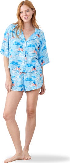 - Short-sleeve button-down top with a relaxed fit.