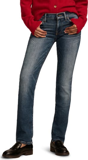 Laid-back and easy for everyday wear, these mid-rise, full-length straight-leg jeans are made from vintage-inspired stretch denim in a faded dark wash.
