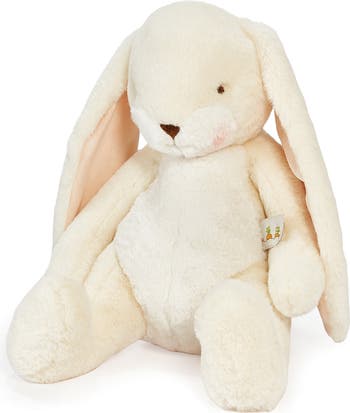 A hand-embroidered face, velour-lined ears and a fluffy tail bring undeniable charm to a soft bunny who will make the sweetest companion for your kiddo.