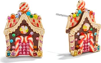 Twinkly crystal candies sparkle and shine from this set of gingerbread-house earrings perfect for gifting.