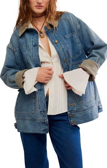 A modern twist on a classic, this boxy fit barn jacket made from nonstretch denim features soft corduroy at the collar and cuffs. Plaid printed lining furthers the warmth and utility-inspired style.