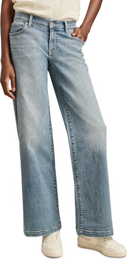 Stretchy denim keeps you moving with ease in these mid-rise jeans that are perfectly faded and cut with wide legs.