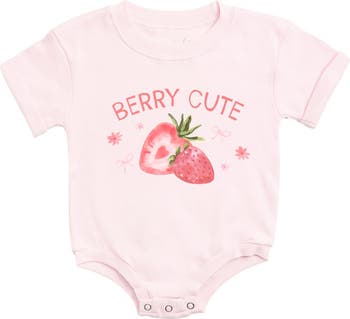 This sweet little romper is bursting with strawberry charm, perfect for your tiny bundle of sweetness.