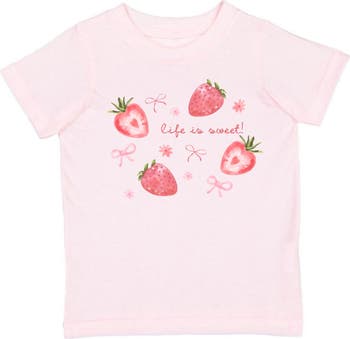 This darling pink tee is sprinkled with the sweetest strawberries and bows, made for girls who make life a little sweeter every day.