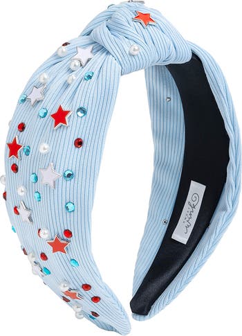 Let your little star shine bright in this knotted sky-blue headband, sprinkled with a galaxy of festive stars and sparkles that’s perfect for a parade-ready, red, white, and cute kind of day.
