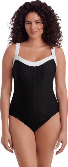 Make a splash with confidence at the beach or poolside in this Longitude one-piece swimsuit, which features extra length in the torso to smooth and flatter your midsection.