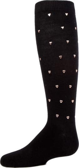 Only the best for your favorite girl, so have her try on a pair of our Sweetheart Knee Highs! These solid socks are finished with a soft, flat knit, and tons of tiny polished hearts that she's sure to love. Crafted from a soft and smooth cotton blend, with flexibility and generous stretch so her socks move with her. Added spandex for an ideal fit that offers superior shape retention and less pilling.