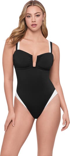 S3 Apparel Sweetheart U-Wire One Piece Swimsuit, Main, color, Onyx Black Colorblock