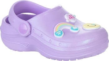 Brighten your toddler’s day with these officially licensed Sweethearts purple clogs for girls! Inspired by the iconic candy heart messages, these clogs feature a fun and colorful design that adds playful charm to every step. Made for comfort and convenience, they’re lightweight, easy to slip on and off, and feature breathable holes to keep little feet cool. Whether she's playing indoors or exploring outside, these clogs offer a secure fit and durable support—perfect for busy little ones with sweet style.