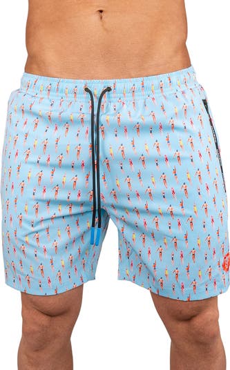 Embrace pool season in lively swim trunks crafted from durable, stretch-enhanced fabric that eliminates abrasion and chafing while reinforced pockets keep your belongings secure.