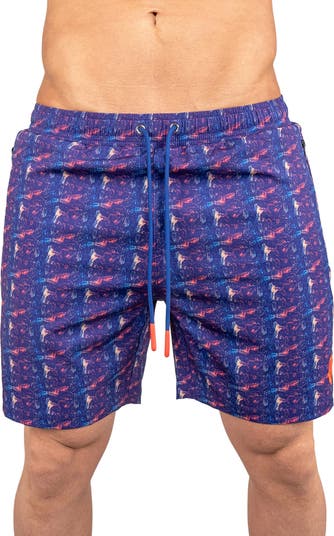 Embrace pool season in lively swim trunks crafted from durable, stretch-enhanced fabric that eliminates abrasion and chafing. Reinforced side-zip pockets keep your belongings secure.