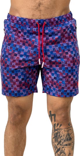 Turn every beach day into a pool party with these boldly patterned swim trunks engineered from ultrasoft, stretchy fabric that eliminates chafing and abrasion. Reinforced pockets securely stow your belongings.