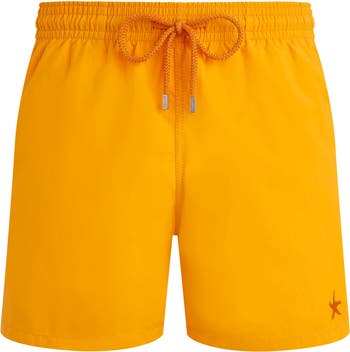 A vibrant pair of printed swim shorts adorned with starfish which appear on entering the water. The elastic waist offers a comfortable fit while Vilebrequin-engraved drawstring tips complete the elegance.