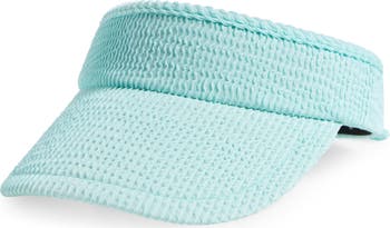 Gentle ruching adds soft texture to this classic visor designed to shade your face, while the interior cotton lining wicks away moisture and an airy bow in the back sweetens the look.