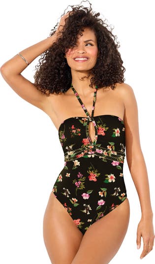 Ready to redefine poolside chic? Our bandeau one-piece is for you. Styled with a keyhole accented front and braid trim from the underbust to the removable and adjustable strap. Wear without the strap as a bandeau, or tie it for a halter look. It also has removable demi cups to give you options: for lift and structure or without, for a more relaxed vibe.