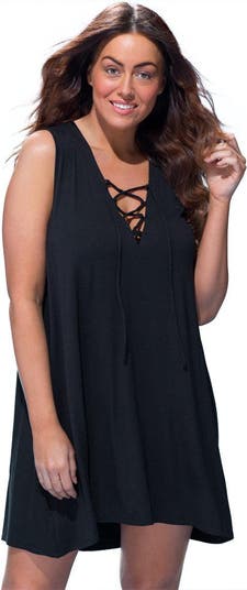 Say hello to Fiona, the perfect lightweight cover up for throw-on-and-go style. With lovely lace-up details on the deep V-neckline and a flowy A-line silhouette, this soft jersey knit style looks amazing on every figure. Wear it to the beach, the boardwalk, the pool and anywhere that calls for a cute, comfy look.