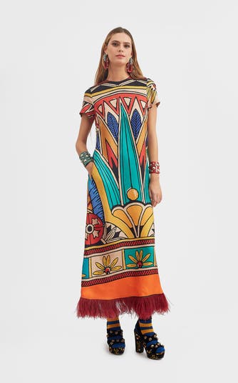 You never forget your first love and this is the story of our Swing Dress. LDJ’s very first model, this easiest of silhouettes is designed to take you from Sunday breakfast to a snappy desk job and all the way through cocktails. We’ve crafted it from our substantial silk twill that doesn’t cling and cut it slim in the shoulders, generous in the hips. More fabulous, did you say? We’ll let our stunning Philae print and high-vibing feather trim do the talking.