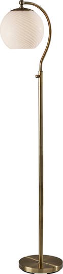 The swirled glass of this antiqued lamp's globe shade helps soften the glow it casts to warm up any space in your home.