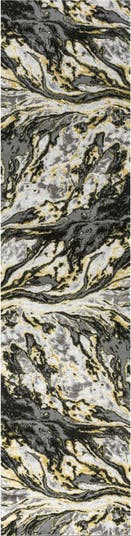 Inspired by the abstract designs of marbled papers, this bold rug has a modern, coastal vibe. Deep beige and gray swirl across an ivory background. This unique rug's overall pattern makes it perfect for homes with kids and pets. It's the perfect centerpiece for a mid-century modern, contemporary, beach house or minimalist interior.