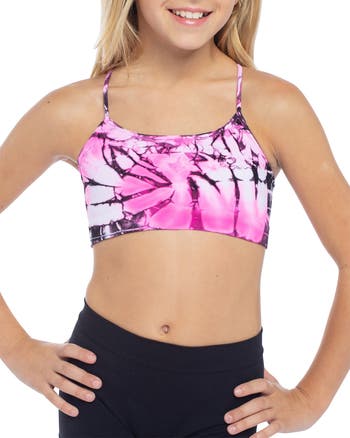A soft bra cami featuring a vibrant swirl tie dye print. Made from a stretchy nylon-spandex blend, this cami offers comfortable coverage and a snug fit, perfect for little kids’ everyday wear and layering.