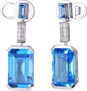 15.56ct Swiss Blue Topaz Octagon Cut Earrings in 14K White gold with natural diamonds