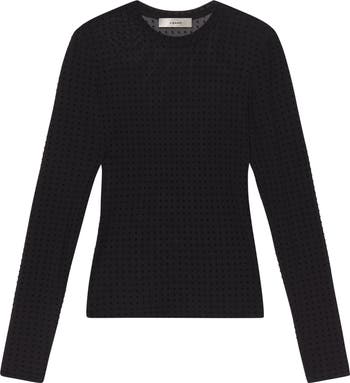 Swiss dots softly pattern this sheer mesh top that's stretchy and layerable.