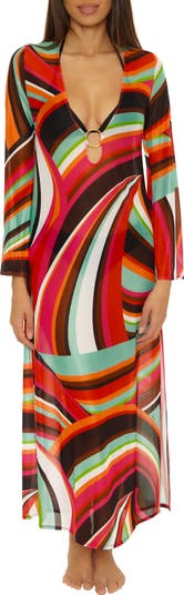 Swoop Long Sleeve Mesh Cover-Up Maxi Dress