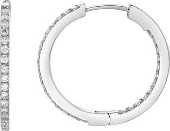 The Sylviana Sleek Inside Out Hoop Earrings in 14K Gold bring maximum brilliance with diamonds placed inside and out for an all around radiant look. A contemporary essential for jewelry lovers. Diamond carat weight may vary up to 0.05 carats from the stated weight.