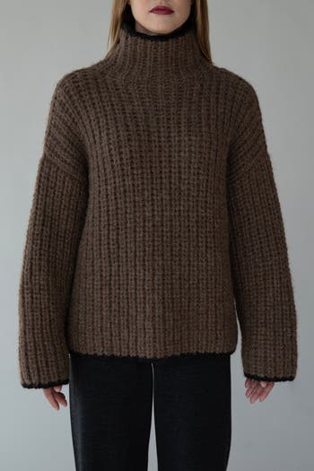 Hand-knit by Peruvian artisans, the Sylvie Pullover embodies sculptural texture and effortless form. Crafted from a rich alpaca blend, it features a relaxed, boxy silhouette, a softly structured high neck, and a dimensional rib stitch that adds depth and warmth. Generous sleeves and side slits create ease and movement, while contrast edges highlight its artisanal craftsmanship. Each piece is one of a kind—celebrating the beauty of handwork and timeless design. *As each piece is knitted by hand, some variations will occur.