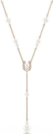 Lustrous Swarovski pearls and sparkly cubic zirconia bring glamorous shine to this horseshoe Y-necklace inspired by the Lunar New Year.